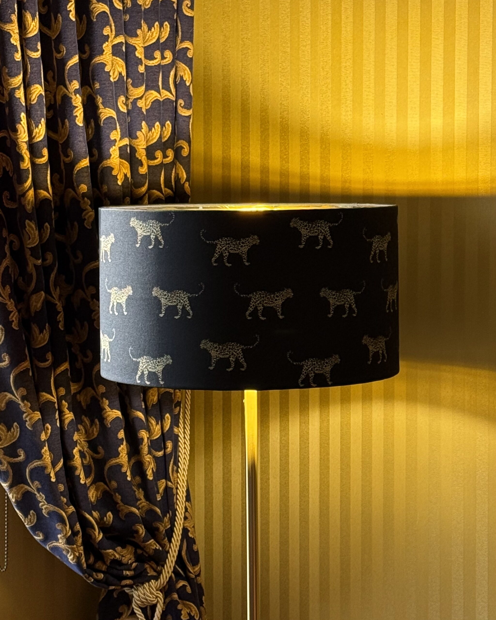Black Leopard Drum Lampshade – Mirror Gold Lining