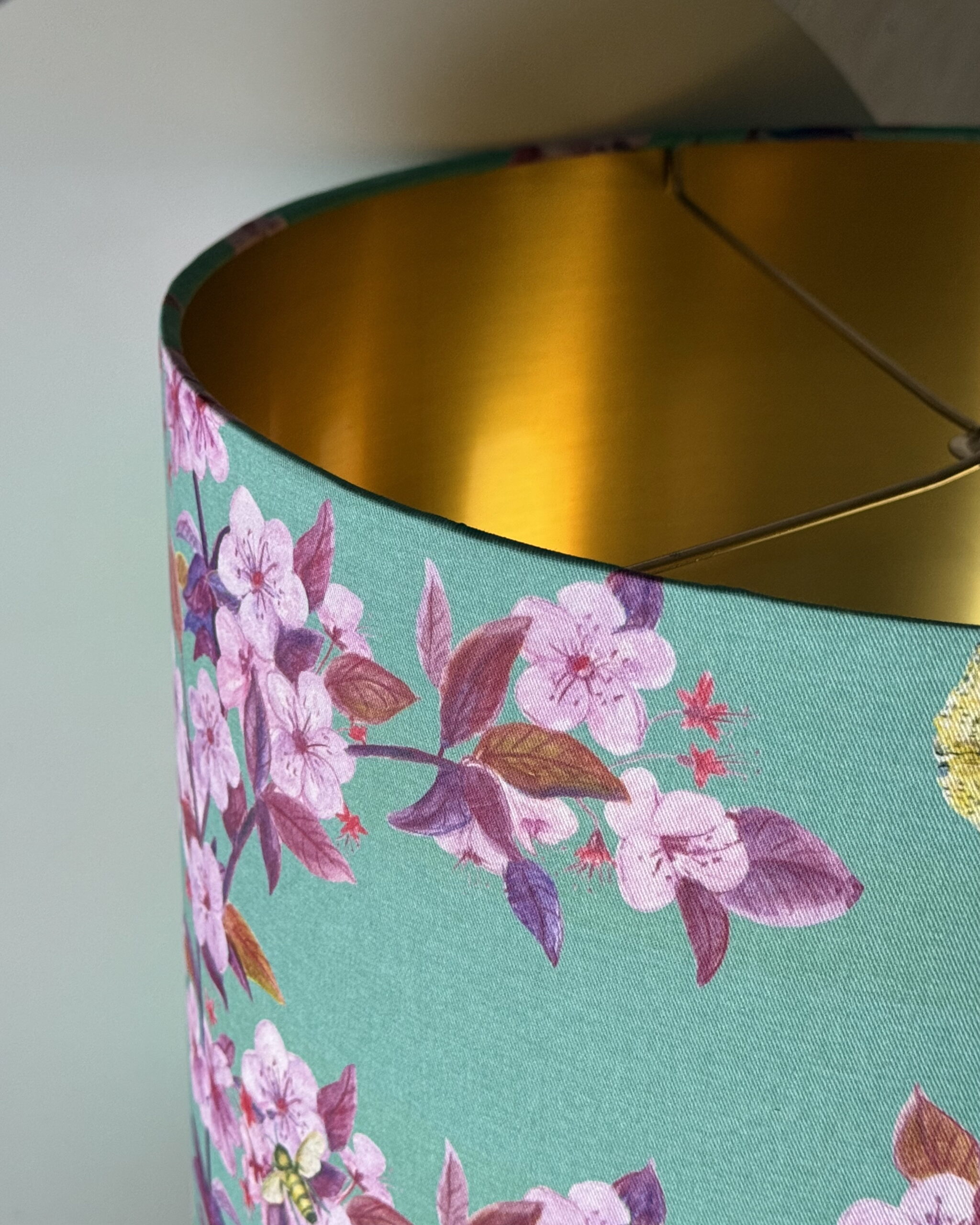Cherry Blossom & Bees Aqua Gold-Lined Lampshade