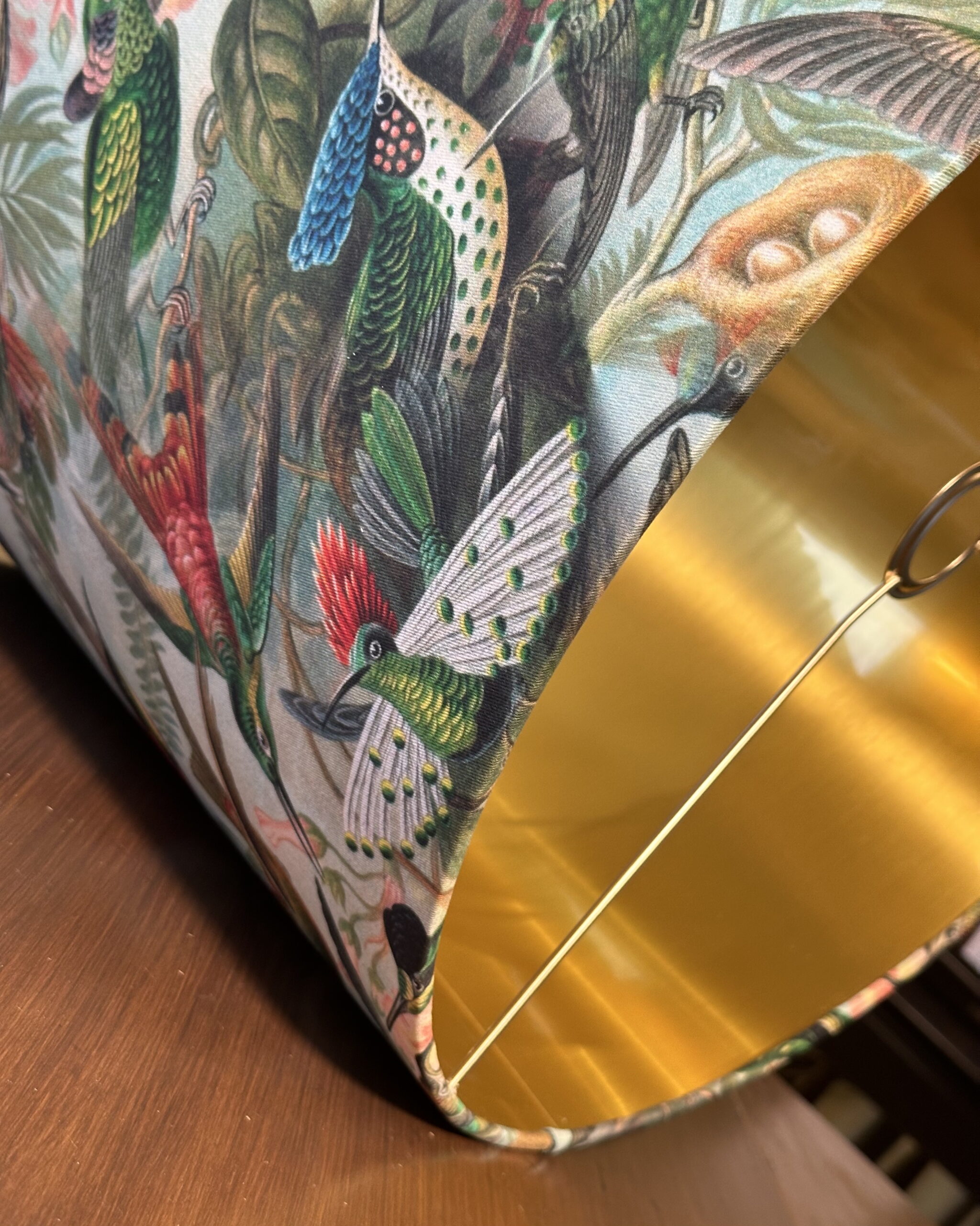 Exotic Hummingbird Paradise Lampshade – Brushed Gold Interior