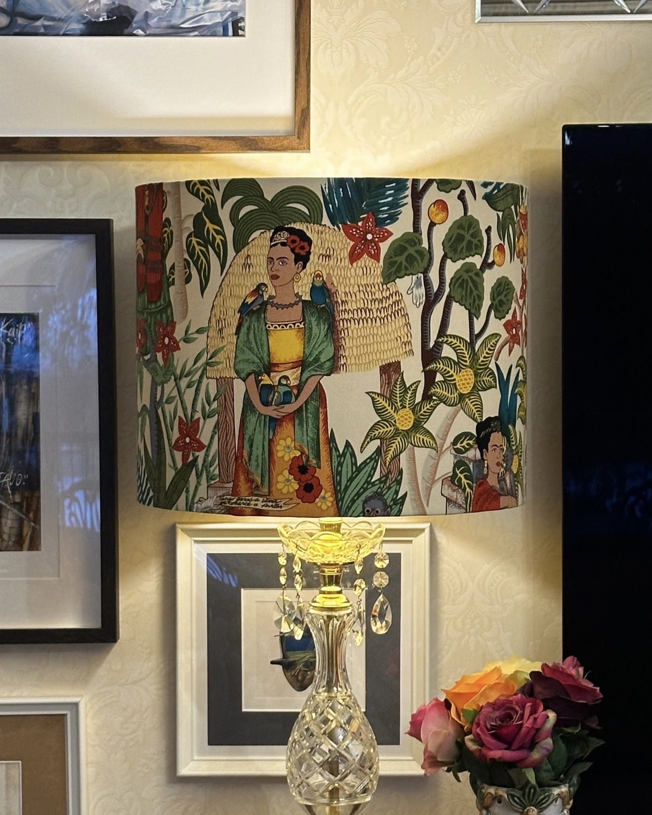 Illuminate your space with the vibrant beauty of the Frida’s Garden Tea Mirror Gold Lampshade, a stunning fusion of art and craftsmanship. Inspired by the iconic Frida Kahlo, this exquisite lampshade features a richly detailed botanical print, bursting with lush flowers, tropical birds, and artistic charm. The luxurious mirror gold lining adds a warm, radiant glow, enhancing the intricate design and creating a cozy yet sophisticated ambiance.