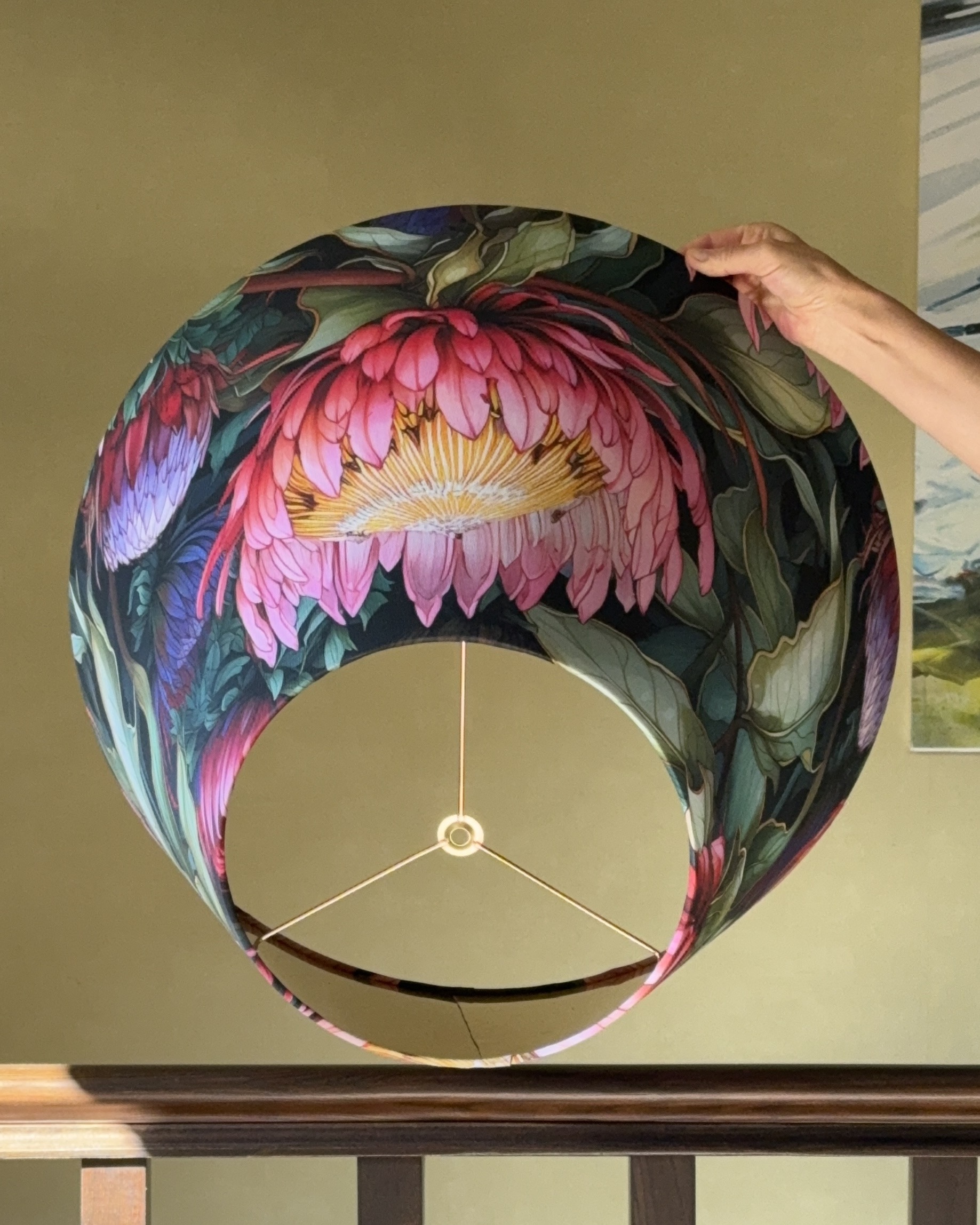 Available in 5 versatile sizes, this handmade floral lampshade works beautifully for ceiling fittings, table lamps, or floor lamps. A perfect blend of art, craftsmanship, and timeless style –  designed to bring color, light and sophistication into your home.