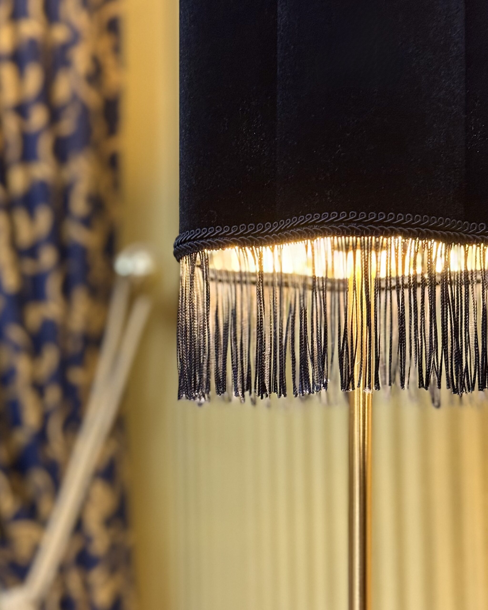 Our gold, silver, champagne and copper-lined lampshades are made using four layers of materials, including the metallic lining, PVC, and your chosen fabric or wallpaper. This ensures that the outer color stays rich and opaque. The light is directional and reflects off the metallic lining, creating a warm glow from the top and bottom of the shade. The amount of light emitted depends on the size of the lampshade—larger shades will provide more light.