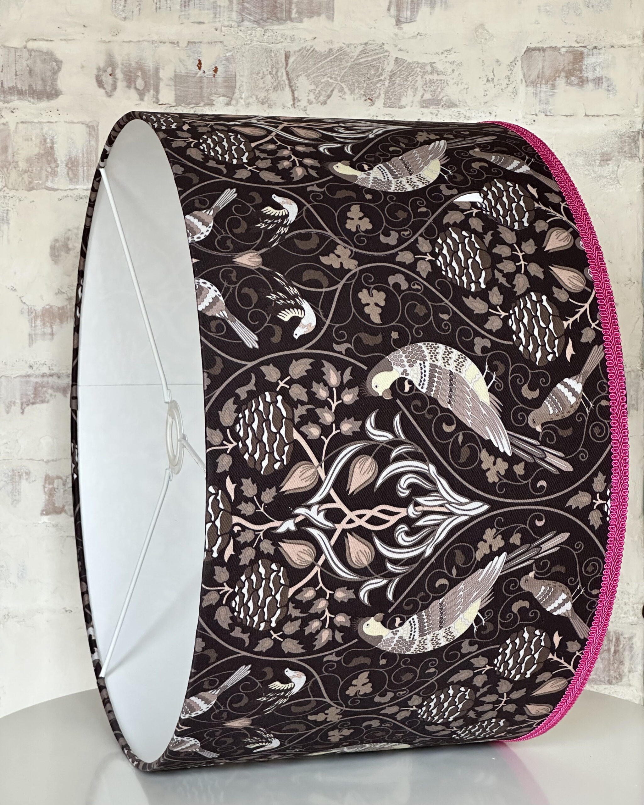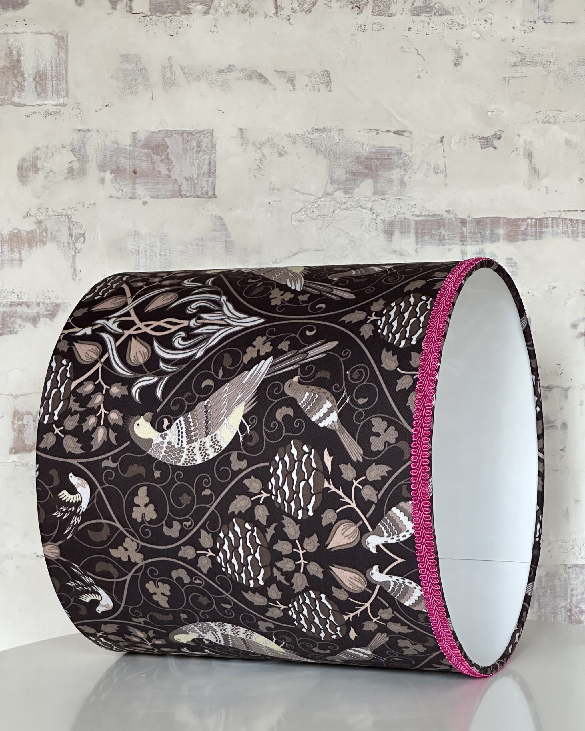 Where heritage meets a pop of playfulness — the William Morris Seasons Pink Trim Lampshade turns classic design into a modern statement. Featuring Morris’s iconic seasonal bird and foliage design in earthy tones, this statement lampshade is beautifully framed with a vivid pink trim for a contemporary pop of colour. Perfect for adding character to any room, it casts a warm, inviting glow when lit and serves as a stunning decorative feature even when the light is off.